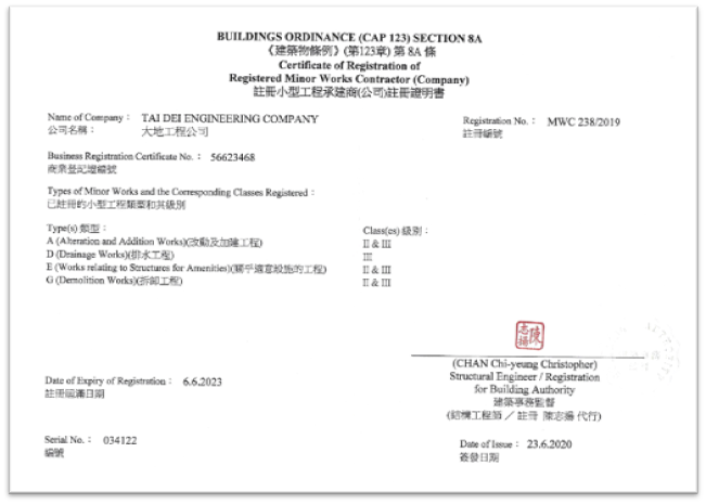 註冊小型工程承建商證明書 Register Minor Works Contractor (Company)